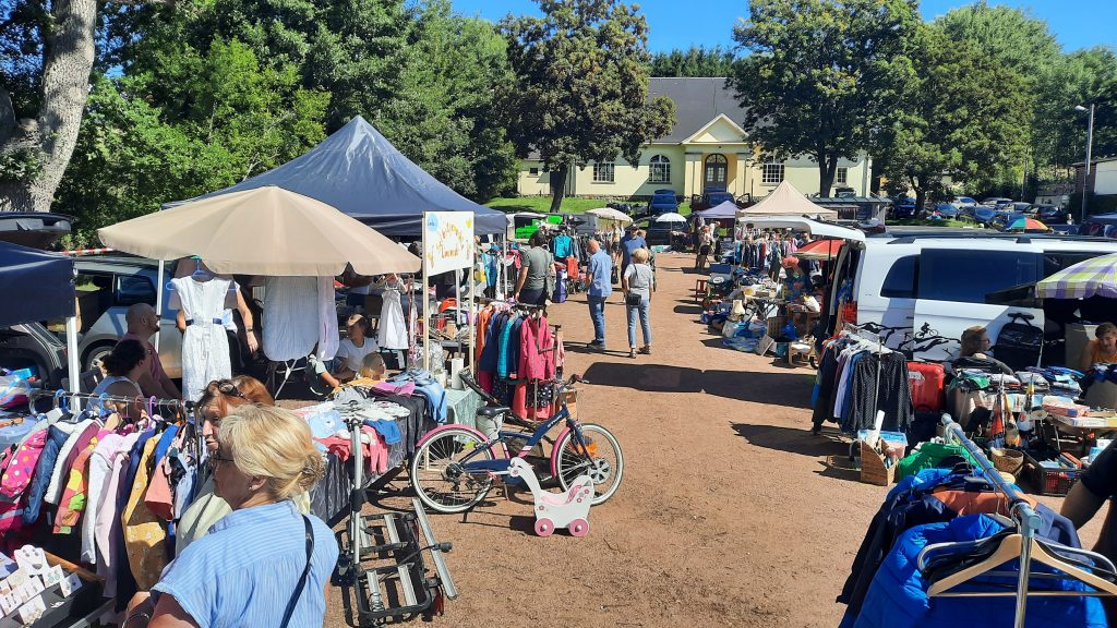 Am Dorffestwochenende gab es auch in diesem Jahr wieder einen Flohmarkt. Unter dem Motto „Kellerschätze und Kindersachen“ wurde auf dem Platz vor der Turnhalle eine Menge angeboten. Das reichte von Kleidung für Kinder über Spielzeug und Bücher bis hin zu Antiquitäten, die der eine oder andere noch bei sich im Keller oder auf dem Dachboden hatte.