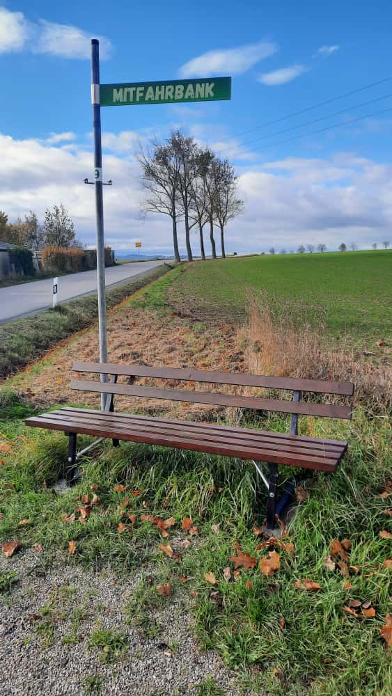 Wer will, kann bei der Strecken-Eröffnung in Rundteil um 11 Uhr gern dabei sein. Wem der Weg nach oben auf den Berg zu weit ist, der kommt einfach zur zweiten Mitfahrbank, die am Hafner-Hof in Oelsa steht. Dort wird die „Mitfahrgesellschaft“ kurz nach elf Uhr eintreffen und dann gibt es dort noch einen kleinen Umtrunk. Wer will, kann die Mitfahrbank aber natürlich auch schon vorher testen.