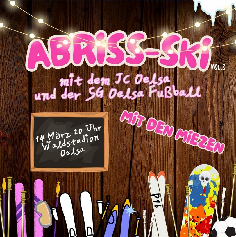 Im März gibts zum dritten Mal Abriss-Ski vom allerfeinszten mit dem Jugendclub Oelsa und den Fußballern der SG Oelsa. Wir sehen uns als Skihasen und Skihasin im passenden Outfit bei Glühwein, Fassbier, besoffener Marille, Aperoli und Hits-die-abreißen an der Schirmbar. Für den kleinen Hunger wird ebenfalls gesorgt sein.